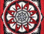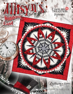 Allisyn’s Wondered Land was designed by Judy and Brad Niemeyer as part of the Sunrise Mixer series. It includes three distinct groups to create an 80” x 80” quilt. A circular center sits in the middle of the quilt with a diameter of 62”. A 4” Wide ring surrounds the center for a total increased diameter of 70”. Then, a border is added to square the quilt off at 80”. This pattern comes with a reversible coversheet! A Forever Collection version is shown on one side and a Passion Fruit version is shown on the other! Yardage is included for both on the back page and Page 30 of the Pattern. The pattern teaches many of Judy’s latest techniques for paper piecing and is fully compatible with Quiltster, meaning that you can find the layout in Quiltster and work with the program to develop your own colorway if you like. The A, B, and C groups can also be mixed and matched with other group designs in the Sunrise mixer series to make a quilt that is truly unique to you! Quiltster is available on a monthly or annual subscription basis. You can learn more about it at www.quiltster.com.