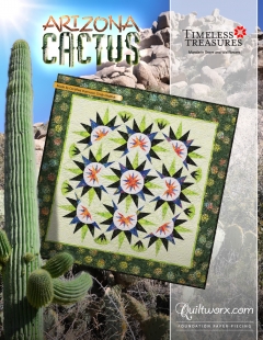 Arizona Cactus was designed by Quiltworx.com in 2012 as a beginner project to teach the basics of paper piecing. The pattern has gone through an update in 2018. The cactus block used in this pattern has been used in several Quiltworx patterns in a variety of different layouts. A layout for this quilt is available in Quiltster. Quiltster is an online app that not only allows you to audition fabrics in your quilts before you buy, but also shares blocks across several layouts. It also allows you to switch out blocks that are identically sized for others, creating a wide range of finished quilt options. To learn more about Quiltster, visit http://www.quiltster.com. Foundation paper piecing, Template Layout Sheets, floating points, and Smart Corners are featured in these instructions, as they have become design standards that our customers have come to expect when they work with one of our patterns.