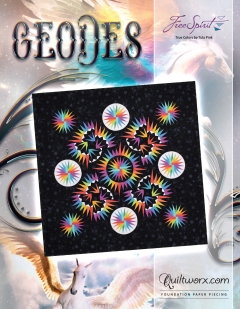 Geodes was designed by Quiltworx in 2022 as an addition to our collection of patterns from the Fireworks Block Mixer Series. Foundation paper piecing, floating points, and Template Layout Sheets are all featured in these instructions. These are design standards our customers have come to expect from Quiltworx patterns. After the paper piecing is completed, traditional curved piecing is required to assemble the blocks. This quilt is fun to make and easily adapted to using strips and background fabric from your own stash if you like.