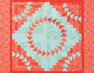 The Log Cabin foundation paper units are designed using a technique in which part of the pieced block units are cut away after the paper piecing is completed. The cut-a-way sections are then replaced with a secondary design element referred to as the circling geese units. The Lincoln Log Cabin table topper is a fun, easy, and quick project for teaching or learning the basic steps to foundation paper piecing and curved piecing. This project was designed to be Fat-Quarter friendly, using a combination of (4) light and (4) dark fabrics!
