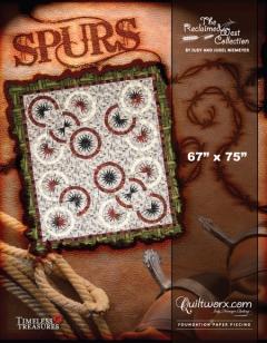 With the release of the Reclaimed West Fabric collection from Timeless Treasures, designed by Judy and Judel Niemeyer, the Cabin Fever was selected as a great quilt design to make utilizing the new fabrics. The Cabin Fever quilt pattern is still on the market, but the evolution of that design with the new fabric line resulted in a new quilt pattern called Country Picnic. Quiltworx used this opportunity to show off the Log Cabin Cutouts quilt design again, this time, with updated instructions that are more flexible for the customers to make the quilt in a variety of ways, and we gave it a new name. The outcome of this effort is Spurs.